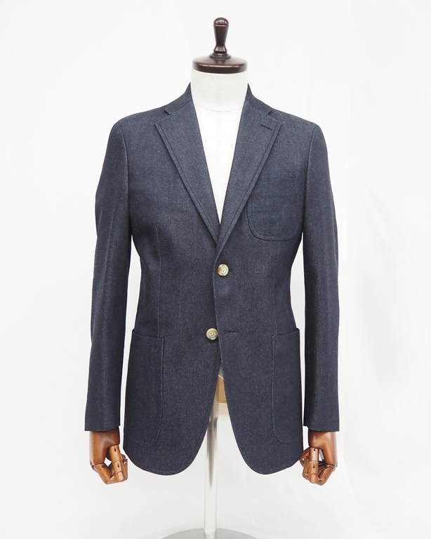 肩パットなどの副資材を極力省いたカジュアルな仕立てで、前身頃の端には同色のシングルステッチをさりげなく。